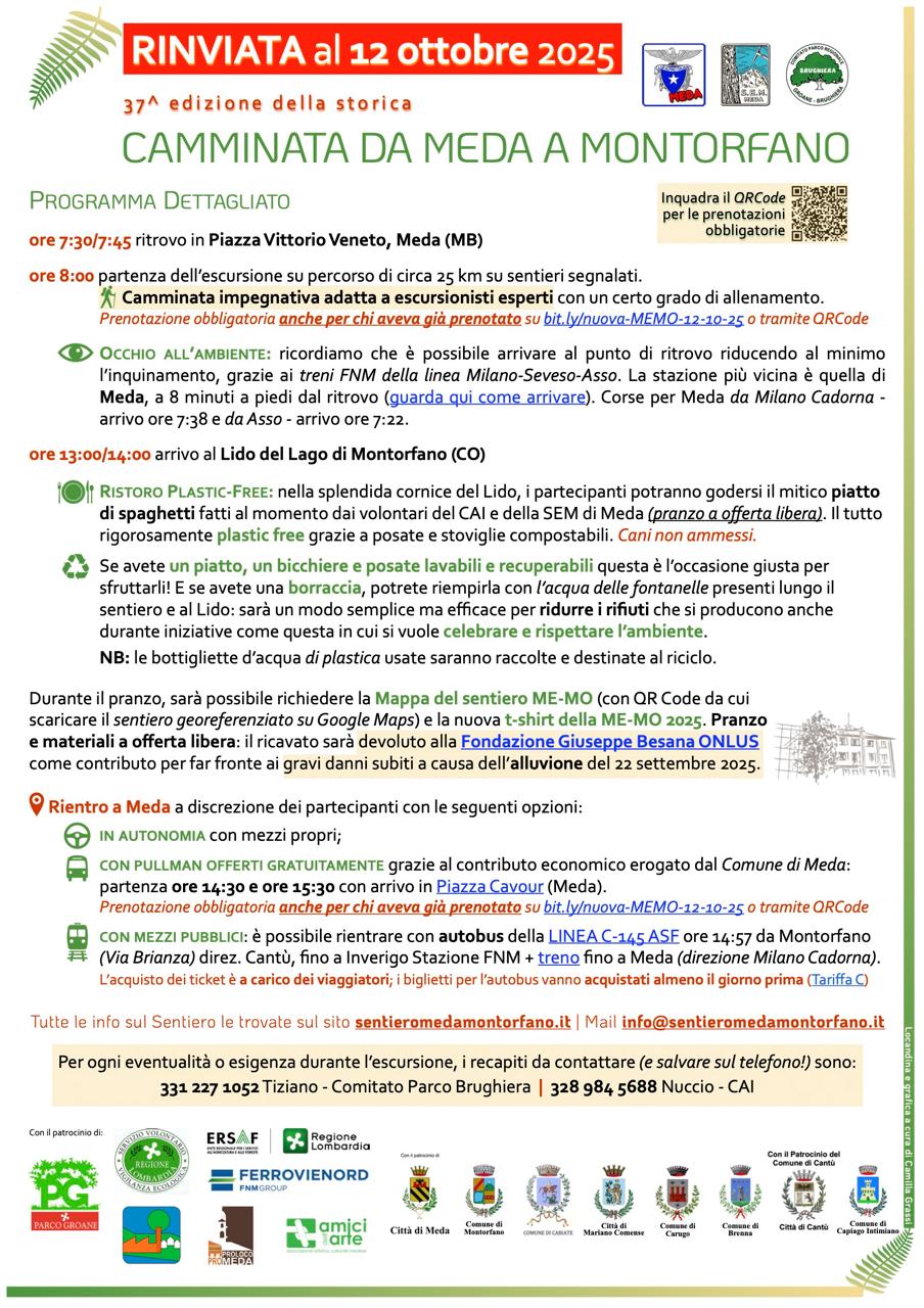 ATTENZIONE - Camminata Meda Montorfano rinviata a domenica 12 ottobre 2025.